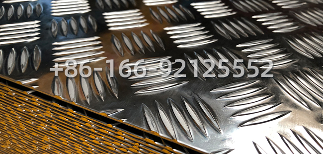5754花紋板表面通常設(shè)計(jì)為五條筋、三條筋等凹凸紋路,紋路夾角60-80度,通過(guò)增加摩擦力有效防止滑倒。例如,五條筋花紋板在公交車(chē)踏板、地鐵站臺(tái)等高人流場(chǎng)所應(yīng)用廣泛,防滑效果顯著。